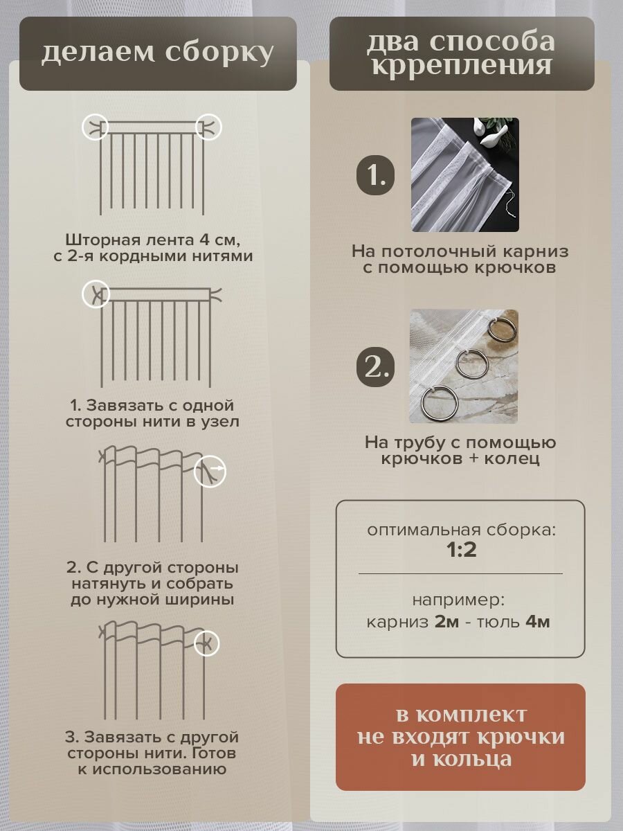 Тюль сетка для комнаты 500*250 с узором, на шторной ленте, белый 1 742 ₽