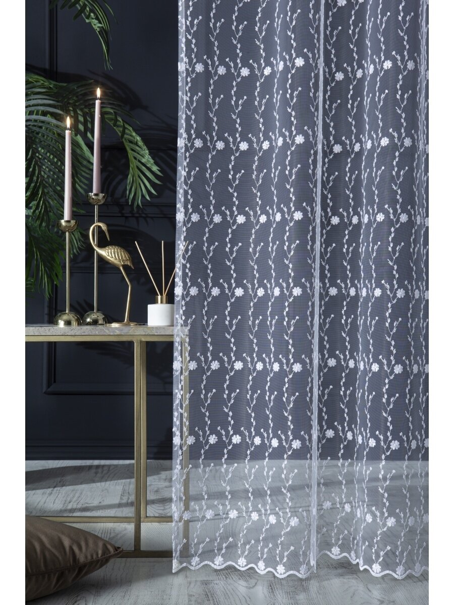 Тюль сетка 300*250 с рисунком и вышивкой на шторной ленте белый 1 320 ₽