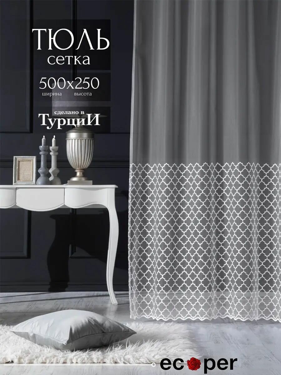10 цен на Тюль для комнаты 500*250 с вышивкой, на шторной ленте для всех типов помещений