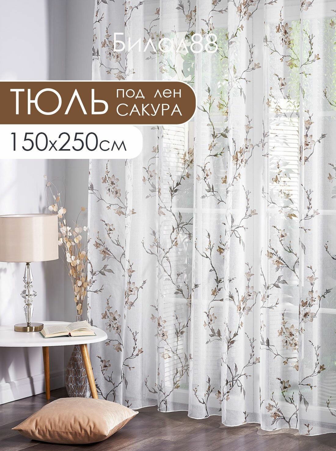 10 цен на Готовый тюль под лен на шторной ленте с утяжелителем ширина 150 см высота 250 см; вуаль с рисунком