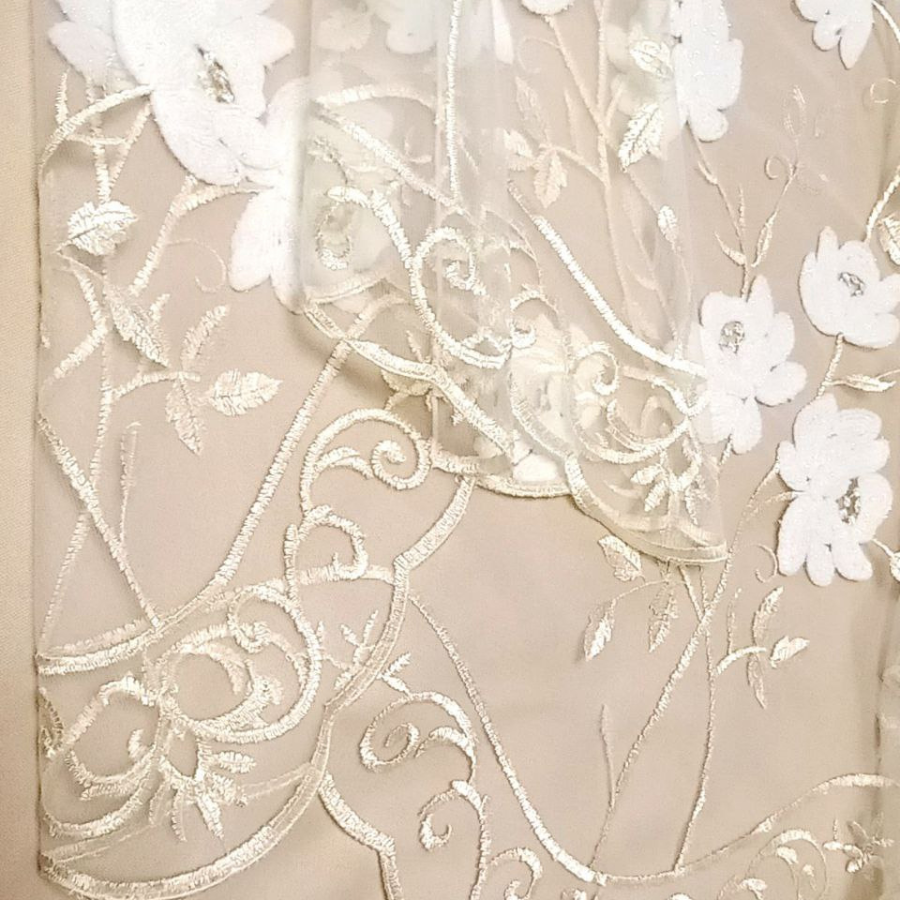 Тюль короткий для кухни 200х150 панно вышивка цветы бежевые в гостиную и детскую информация: