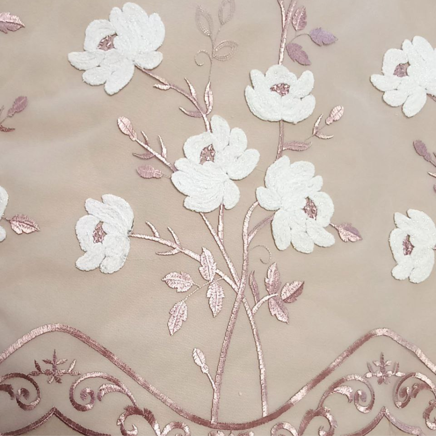 Тюль короткий для кухни 200х150 панно вышивка цветы розовые в гостиную и детскую информация:
