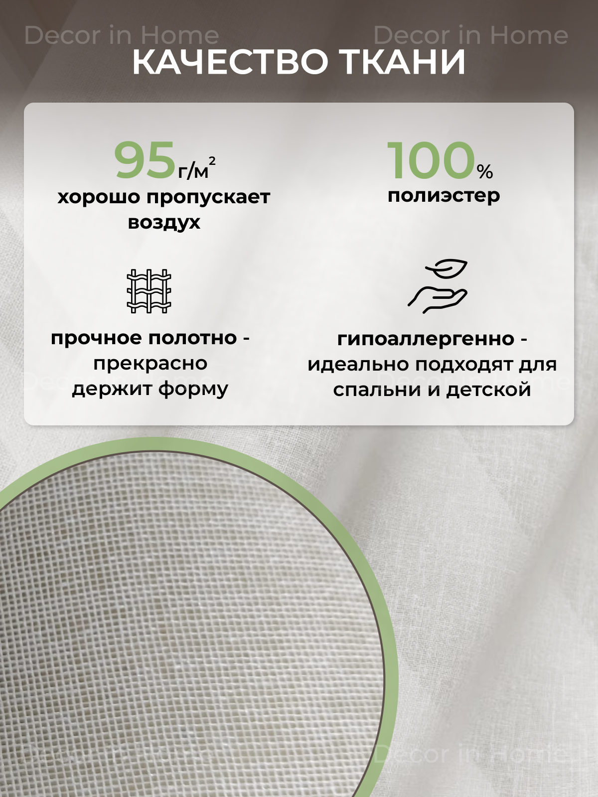 Тюль "DECOR in Home" - комплект из 2 шт, белый лён, ширина 200 см, высота 220 см. 2 300 ₽