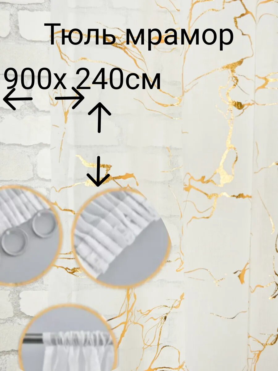 Тюль под лён, золотистый мрамор 500х240см. 1 840 ₽