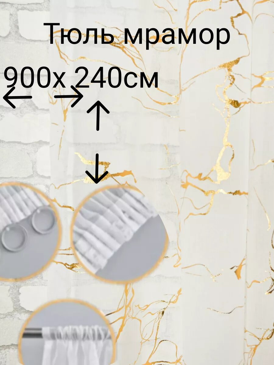 10 цен на Тюль под лён, золотистый мрамор 500х260 см.