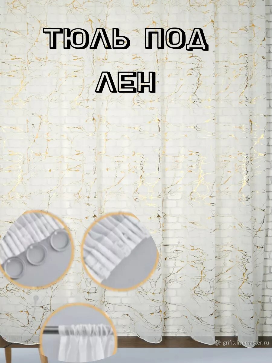 Тюль под лён, золотистый мрамор 500х260 см. 1 600 ₽