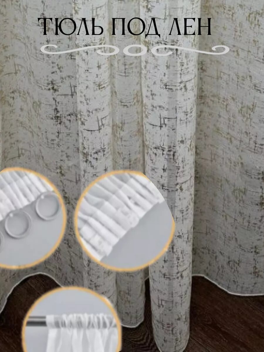 Тюль Лен с утяжелителем / Высота 250см Ширина 500см (2.5 на 5.0 м ) Тюль для кухни /Тюль в гостиную /Тюль в детскую /шторы
