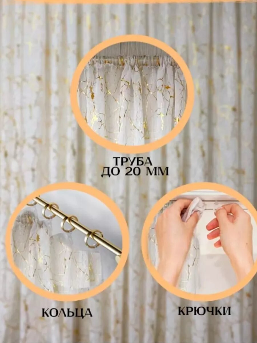 Тюль под лён, золотистый мрамор, 600х270см. информация: