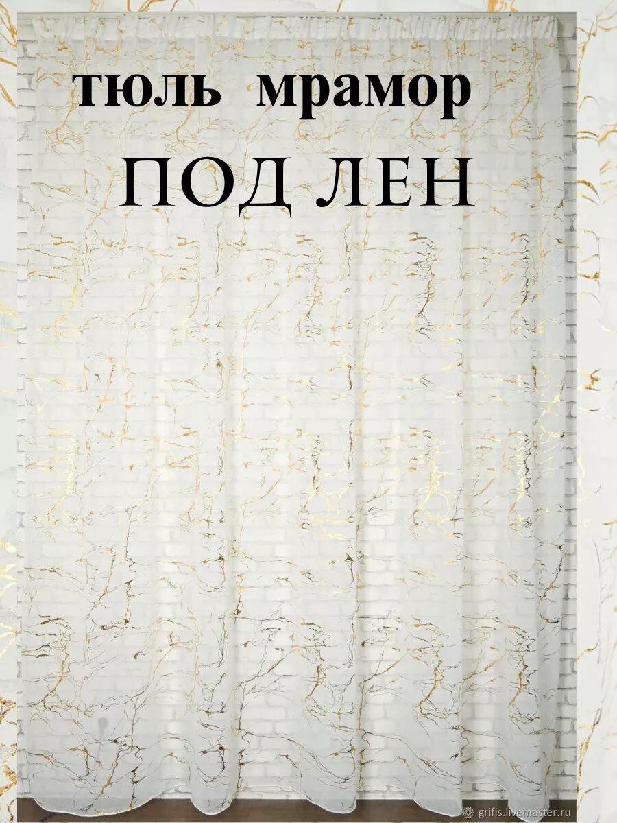 10 цен на Тюль под лён, золотистый мрамор 600х260 см.