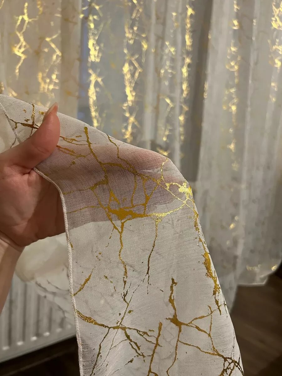 Тюль под лён, золотистый мрамор 500х250см. 1 880 ₽