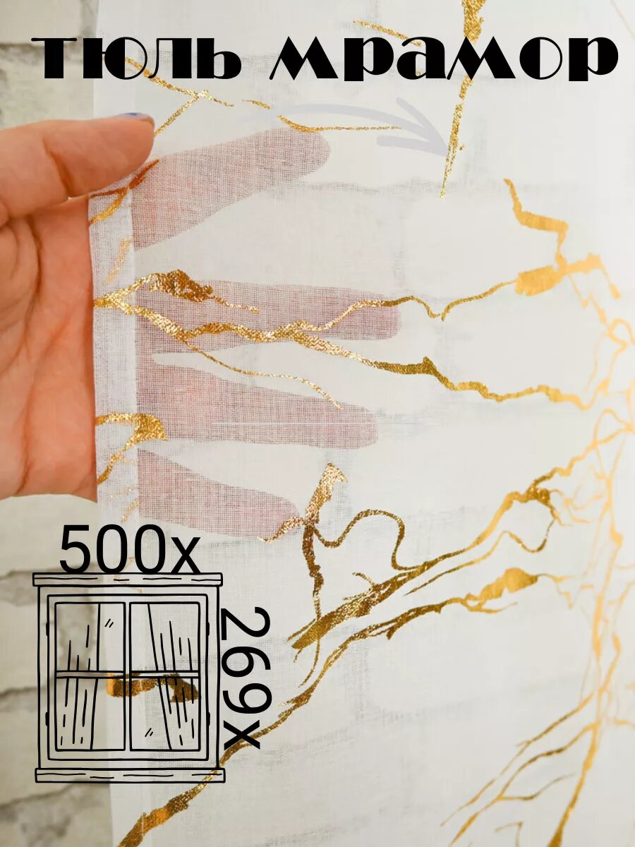 Тюль под лён, золотистый мрамор 500х270см. 1 840 ₽