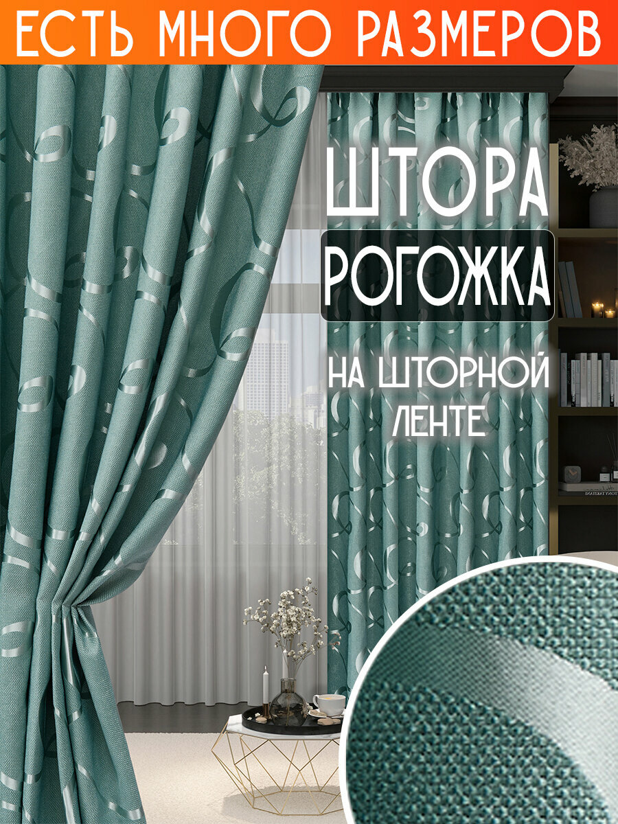 10 цен на Готовая плотная интерьерная штора(портьера) рогожка с узорным рисунком 400x260 см.(1шт.) со шторной лентой