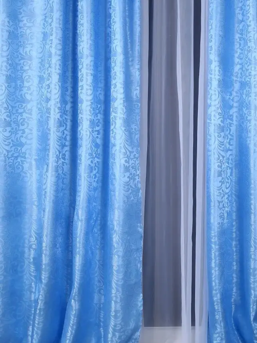 Отзывы на Шторы короткие жаккард на кухню, вензель голубой, 150 х 140 см, Эста
