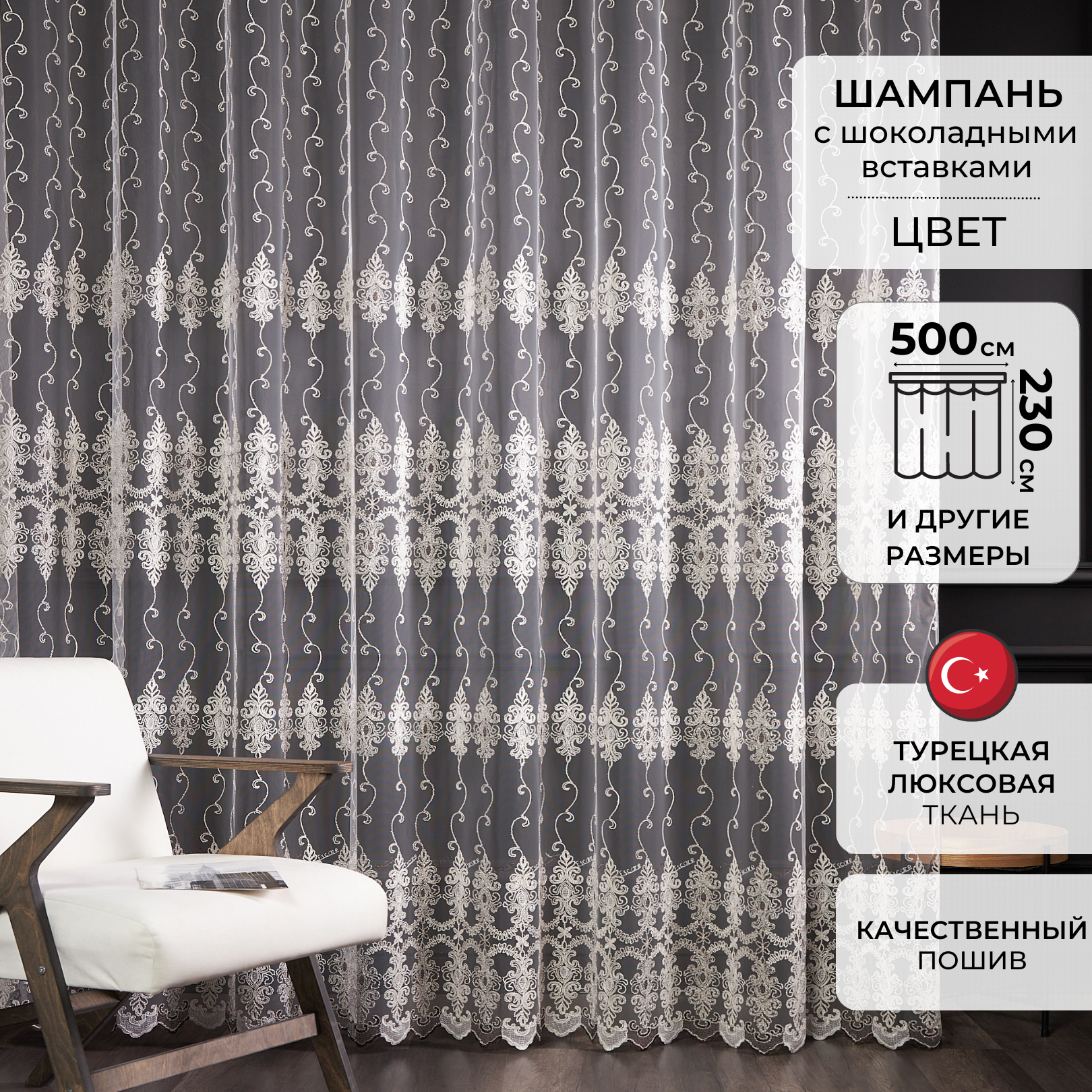 Современная тюль 250*300 сетка с вышитым узором на окно для гостинной, спальни, кухни. Прозрачная золото штора вуаль. 3 700 ₽