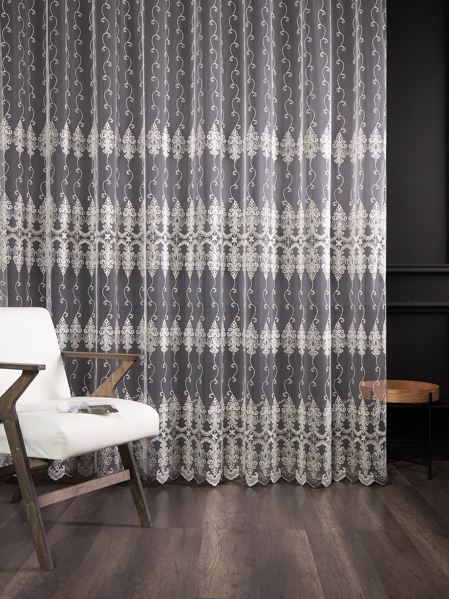 Современная тюль 270*400 сетка с вышитым узором на окно для гостинной, спальни, кухни. Прозрачная золото штора вуаль. 4 400 ₽