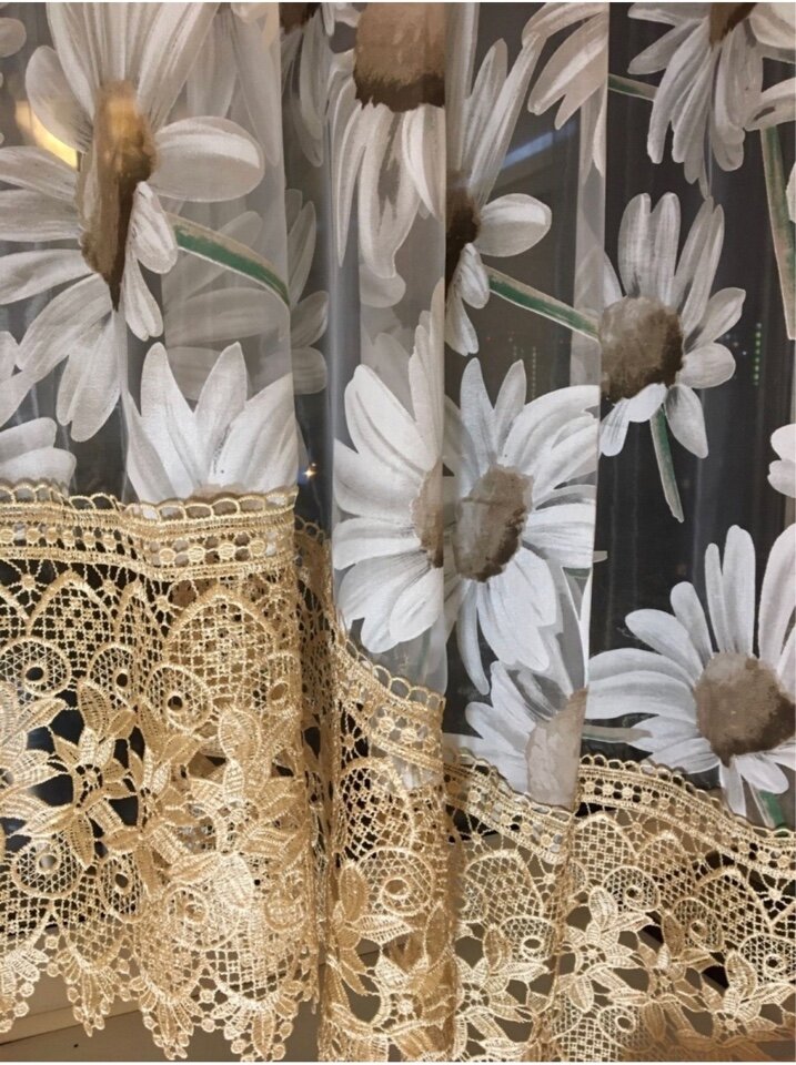 Тюль, шторы для кухни, арка короткая, цветы Ромашка 290*160, гардина, занавески в комнату. 3 200 ₽