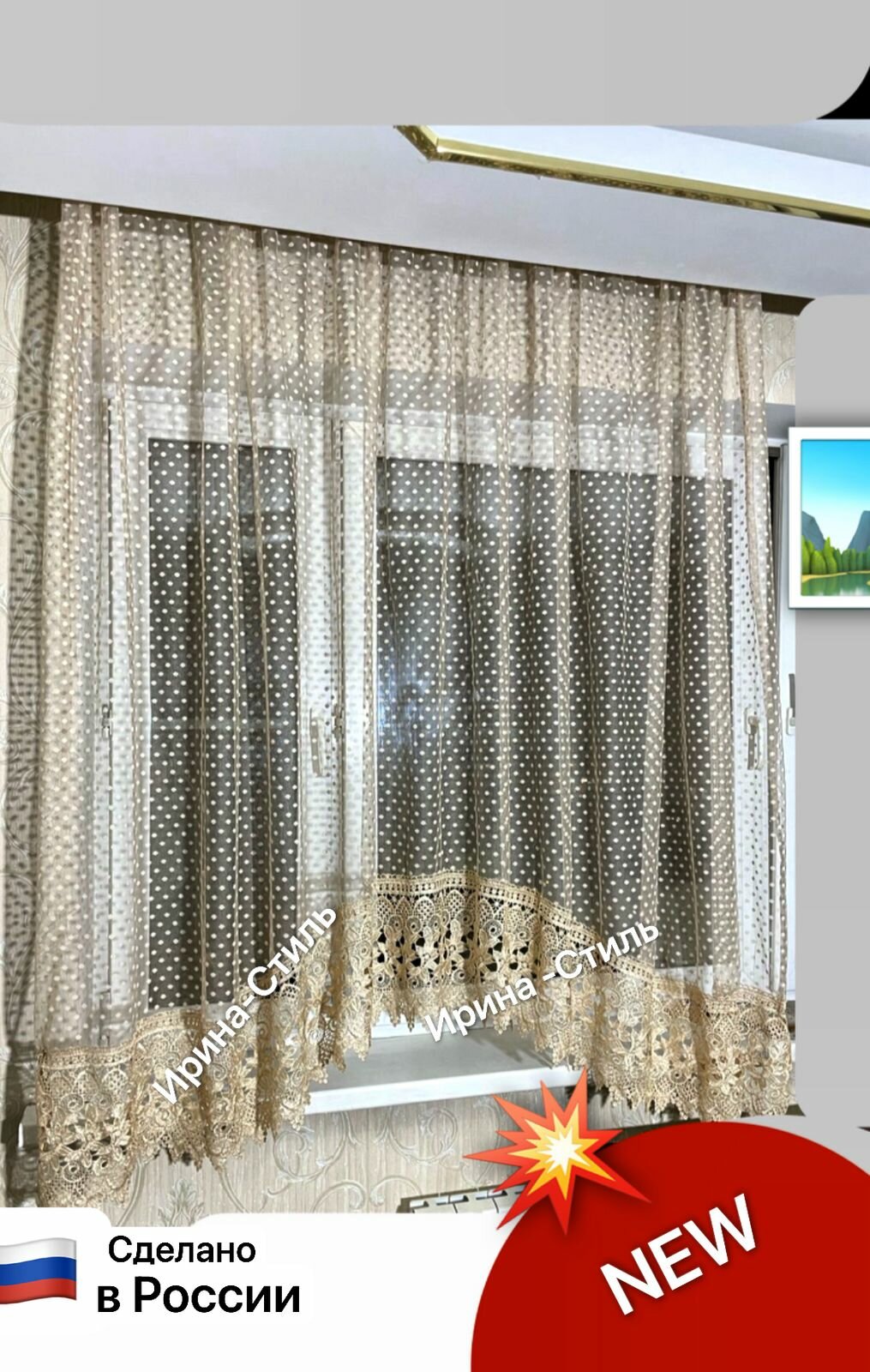 Шторы для кухни, тюль арка короткая, горох 290х160, гардина, занавески готовые в комнату . детскую спальню 4 116 ₽