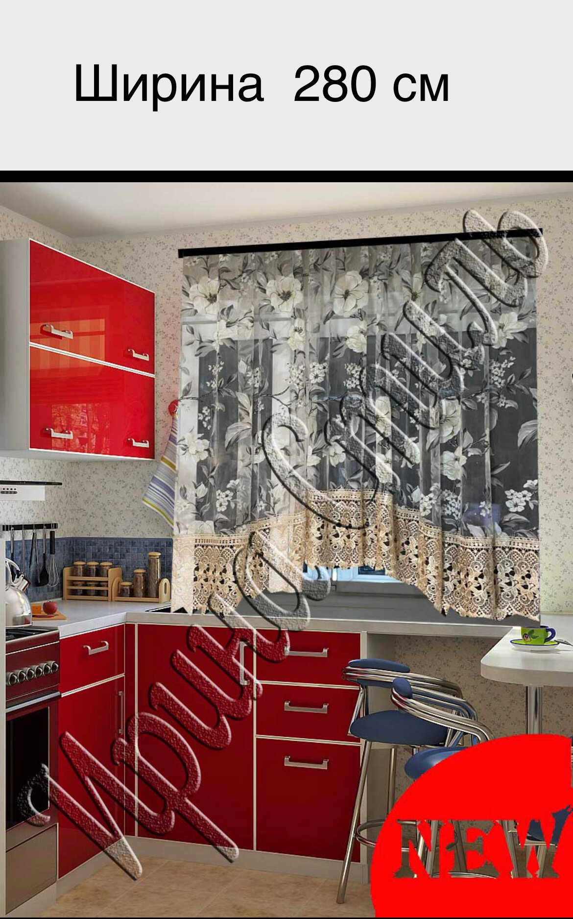 Шторы тюль арка занавески короткие для кухни маки 3 500 ₽