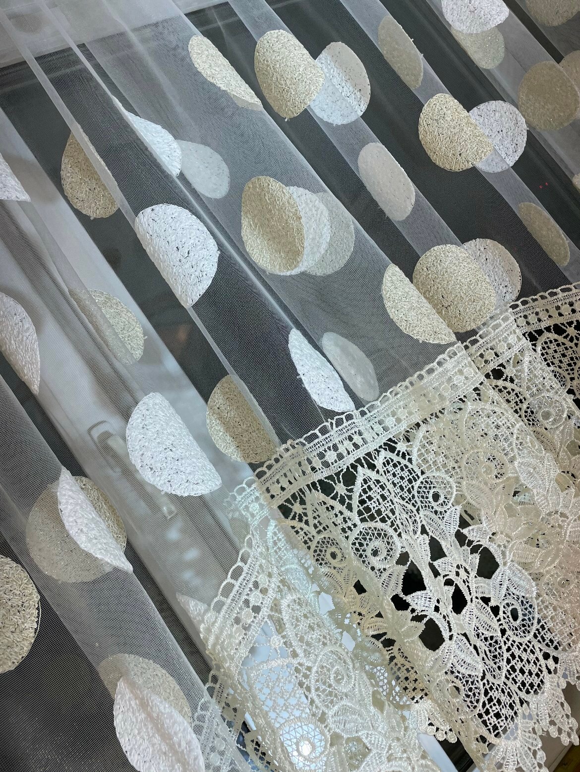 10 цен на Тюль, на кухню арка шторы занавески для кухни, арка короткая, горох 290х160. гардины готовые в комнату детскую спальню