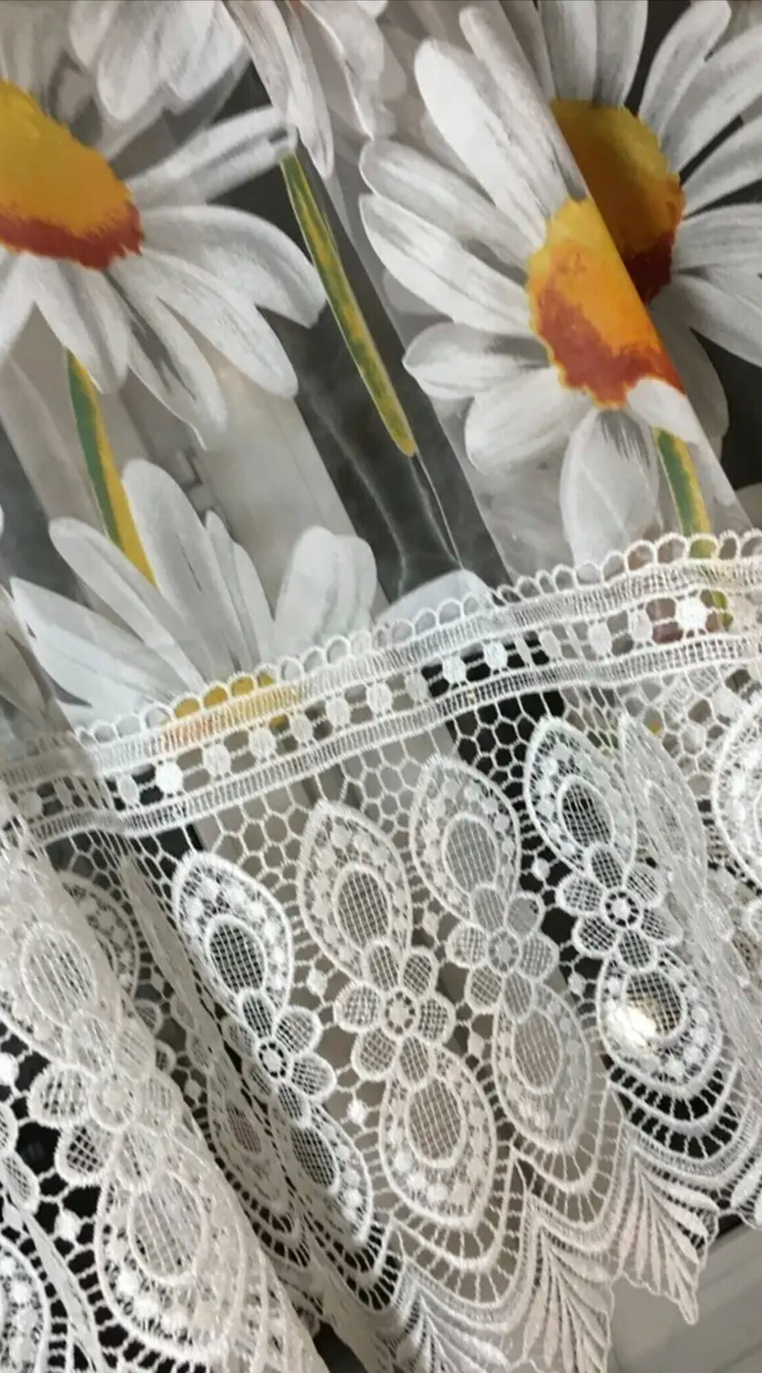 Тюль, шторы для кухни, арка короткая, цветы Ромашка 290*160, гардина, занавески в комнату. 3 200 ₽
