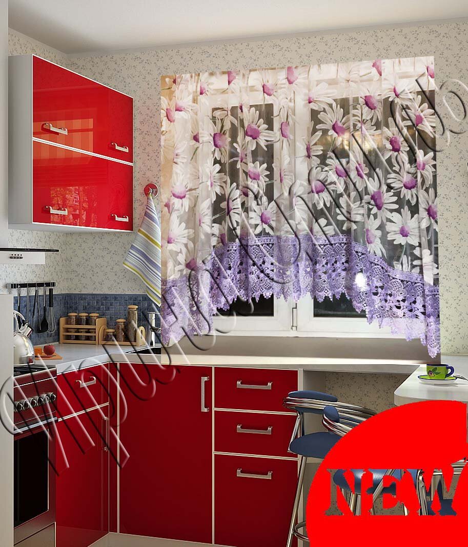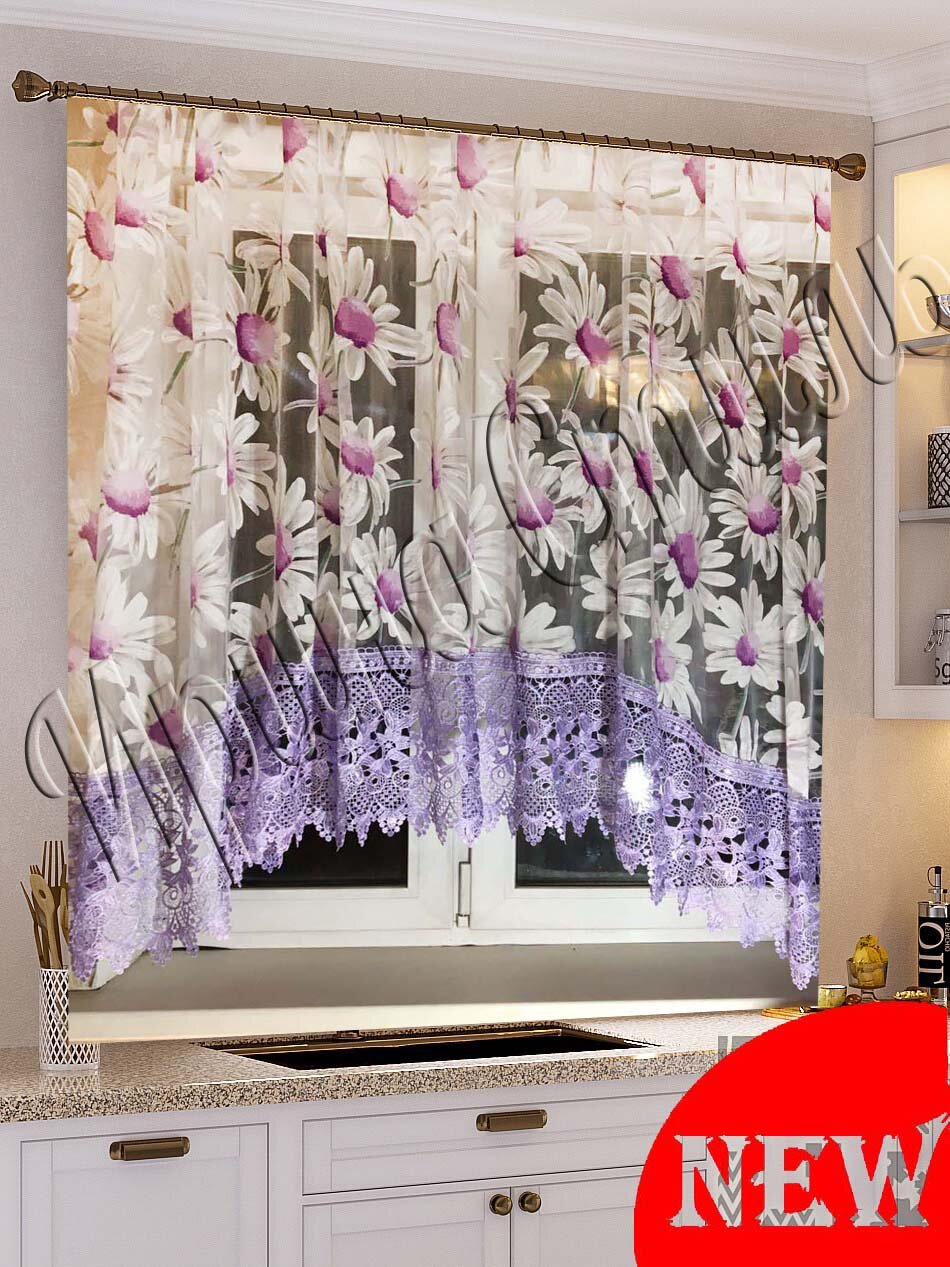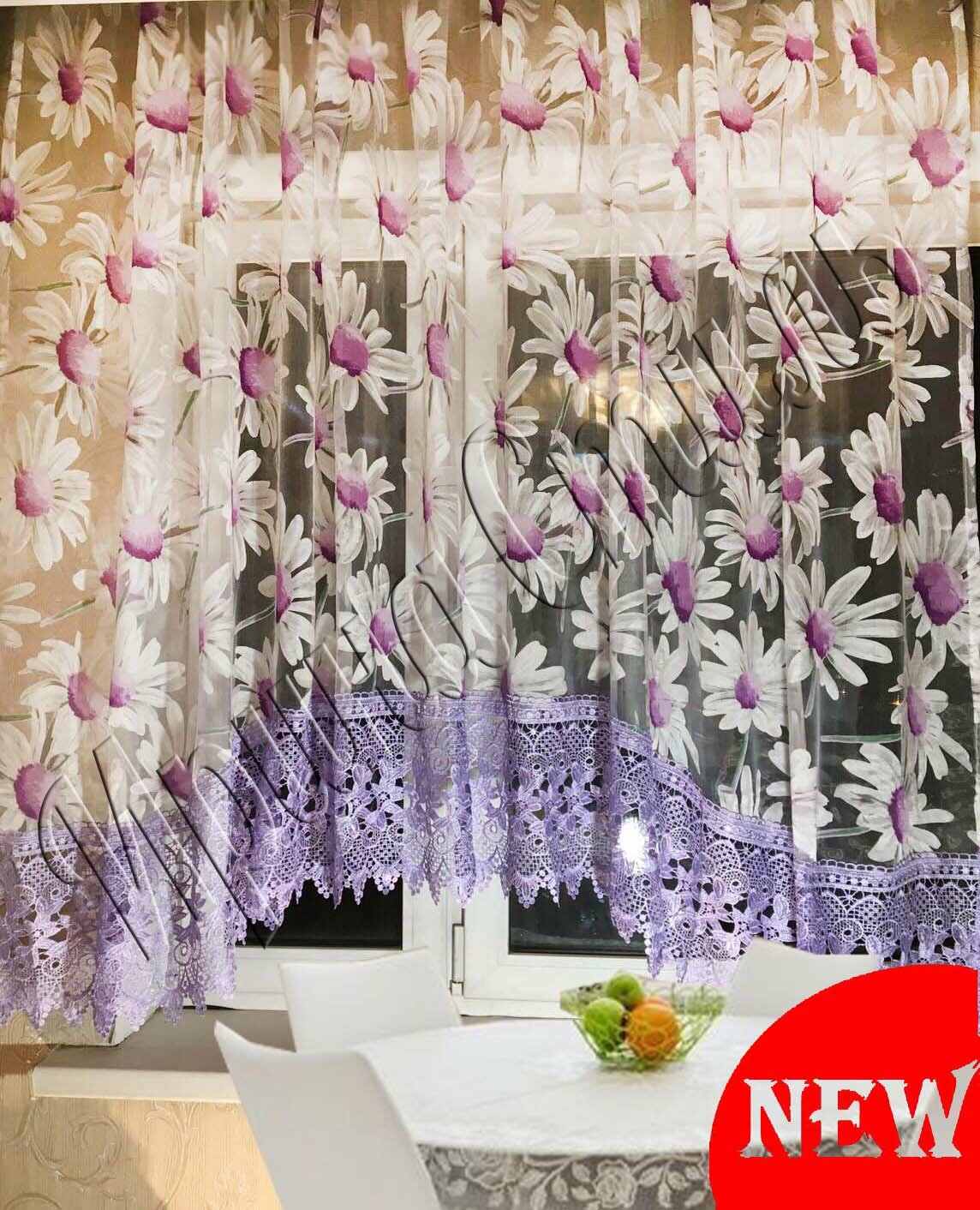 Тюль, шторы для кухни, арка , сирень Ромашка 290*160, гардина, занавески в комнату короткие информация: