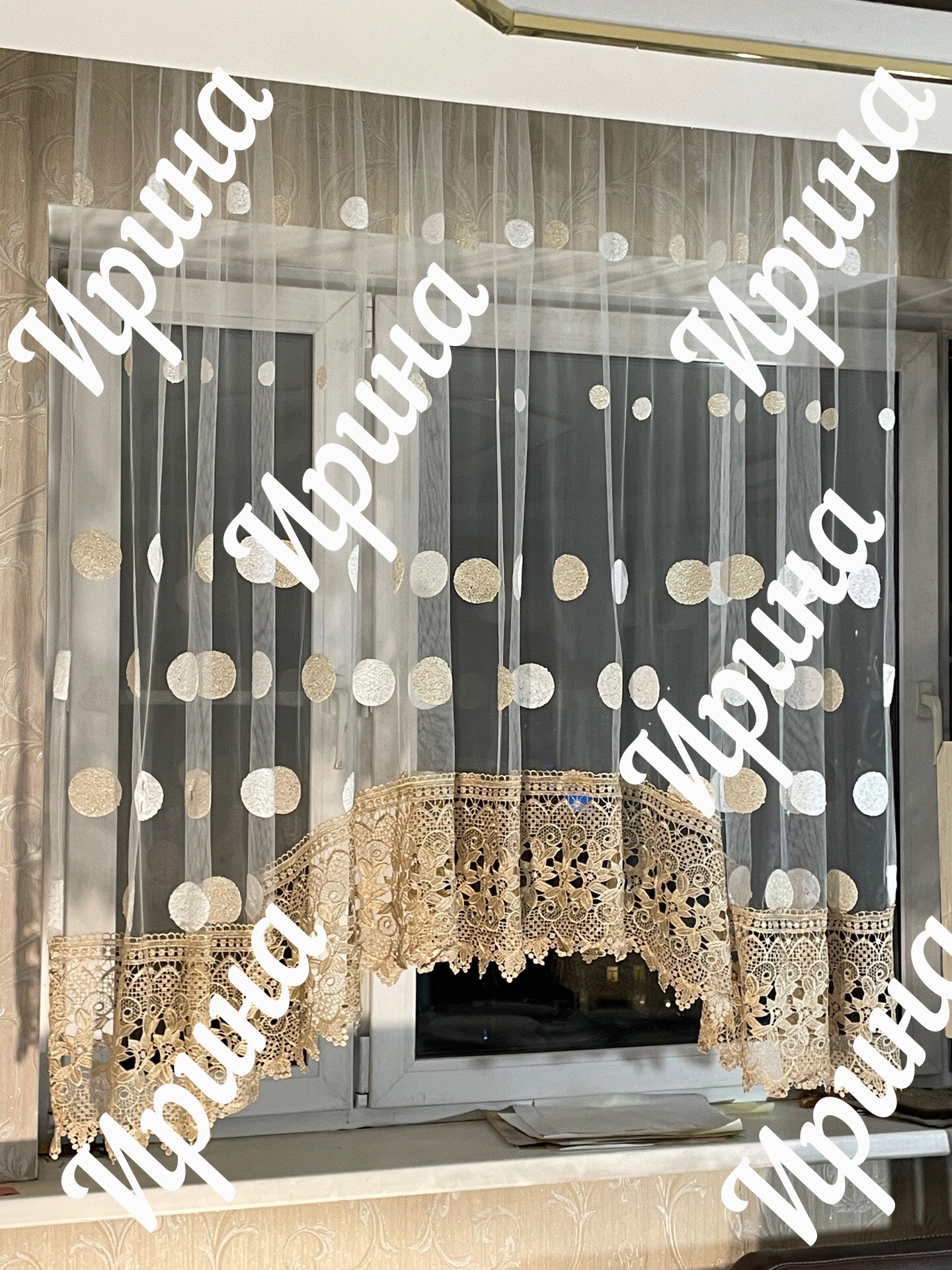 Шторы для кухни, тюль арка короткая, горох 290х160, гардина, занавески готовые в комнату . детскую спальню 4 116 ₽