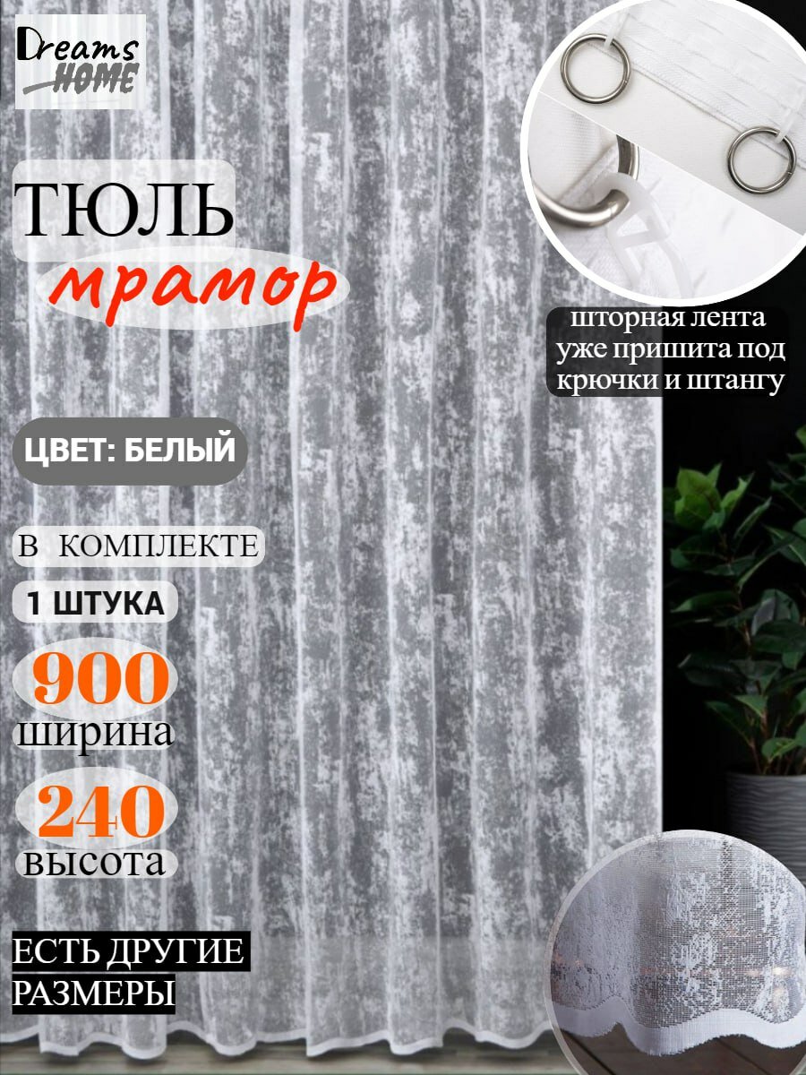 10 цен на Тюль мрамор для гостиной, для спальни, для кухни 900 на 240см