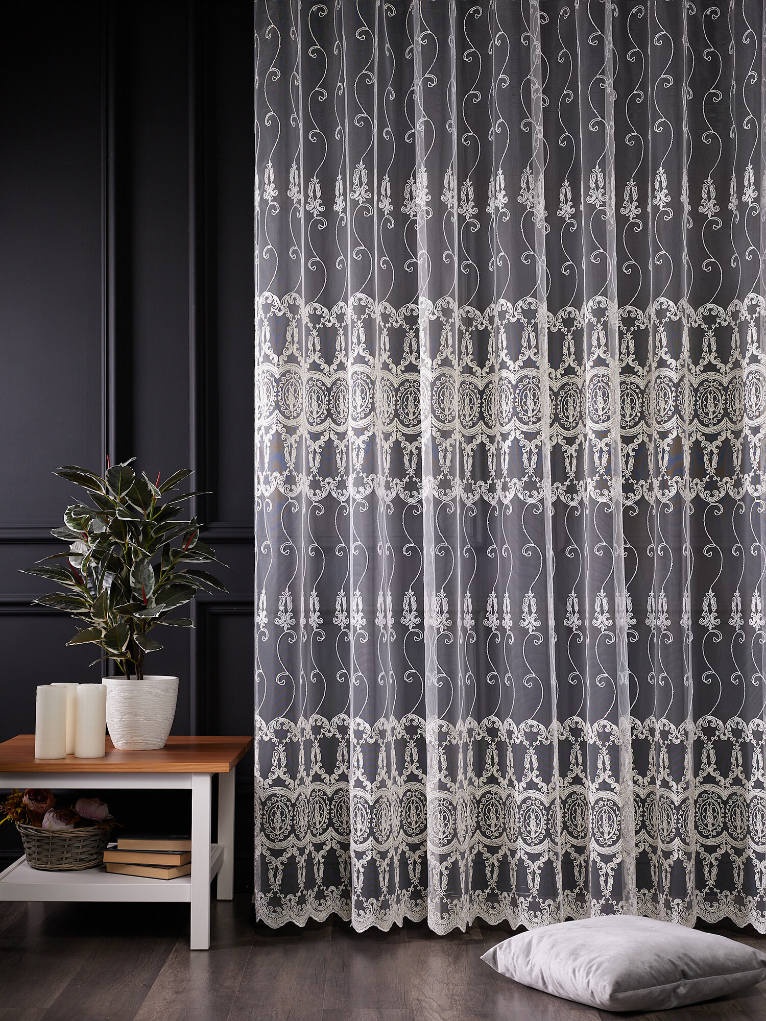 Современная тюль сетка 250 см на 500 см с вышитым узором на окно для гостинной, спальни, кухни. Прозрачная штора вуаль. 3 700 ₽