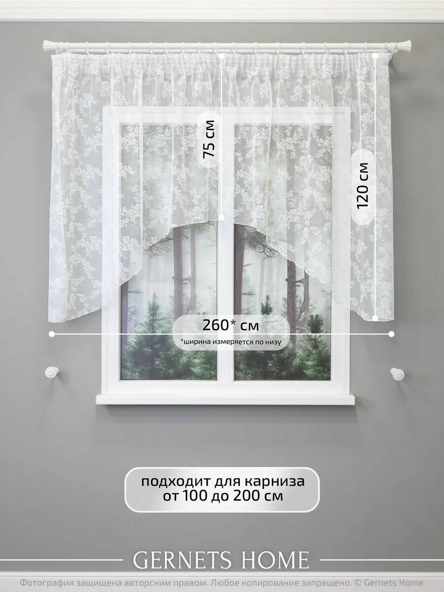 Тюль арка высота 120 см ширина 260 см для кухни белая короткая 1 630 ₽