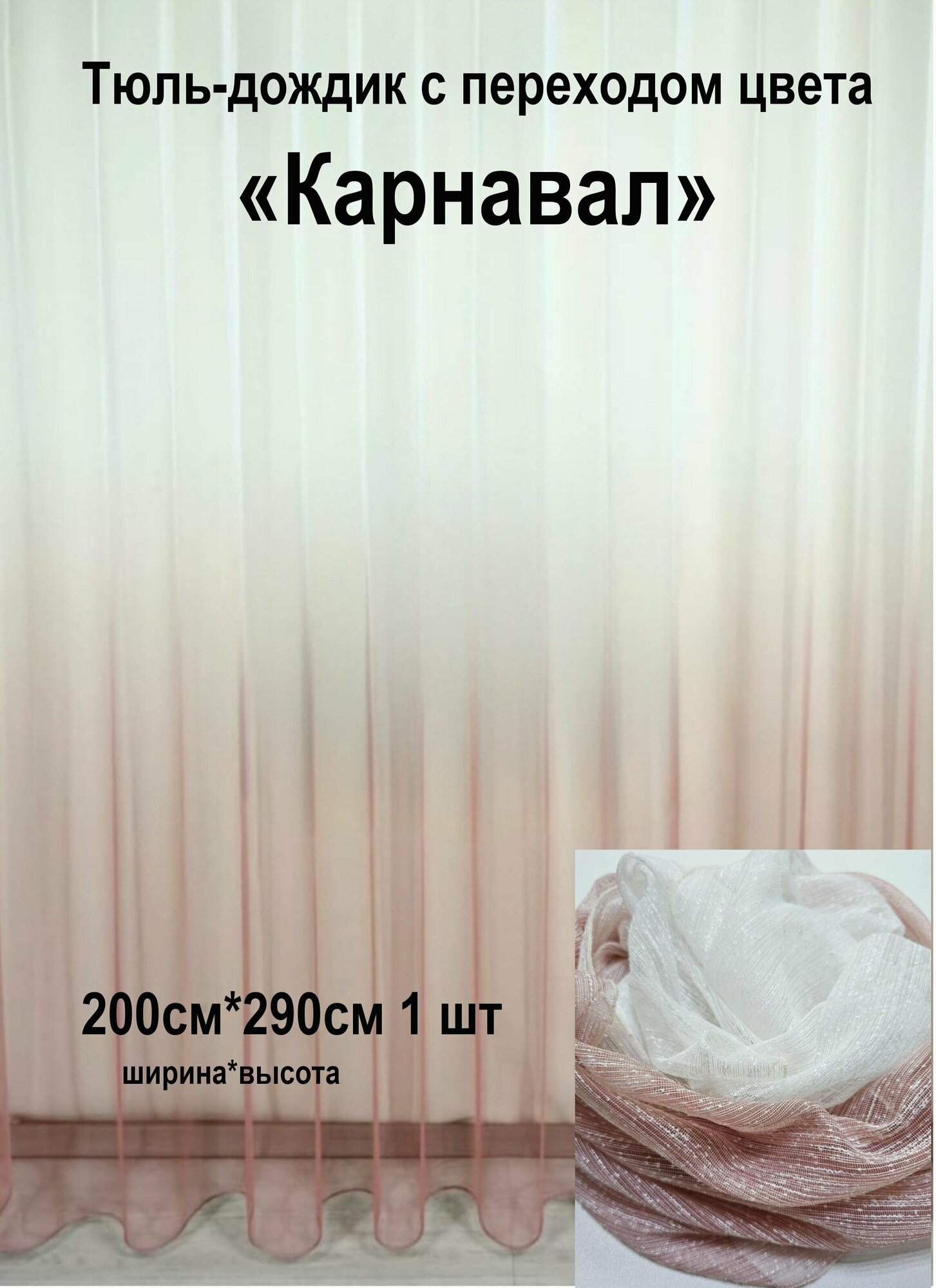 Тюль Дождик с переходом цвета Карнавал Tex Valley, ширина 200, высота 290 см, 1 шт, Пудровый информация: