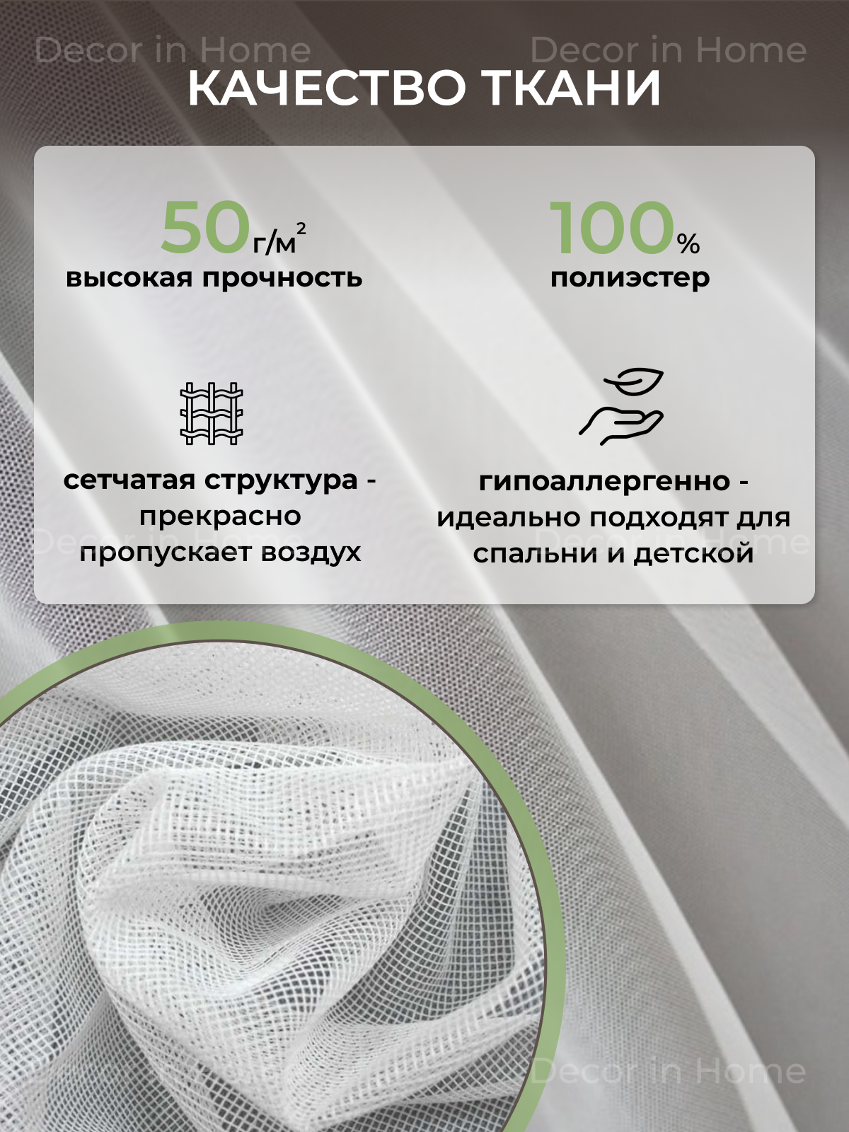 Отзывы на Тюль-Сетка "DECOR in Home" - комплект из 2 шт, ширина 500 см, высота 260 см.