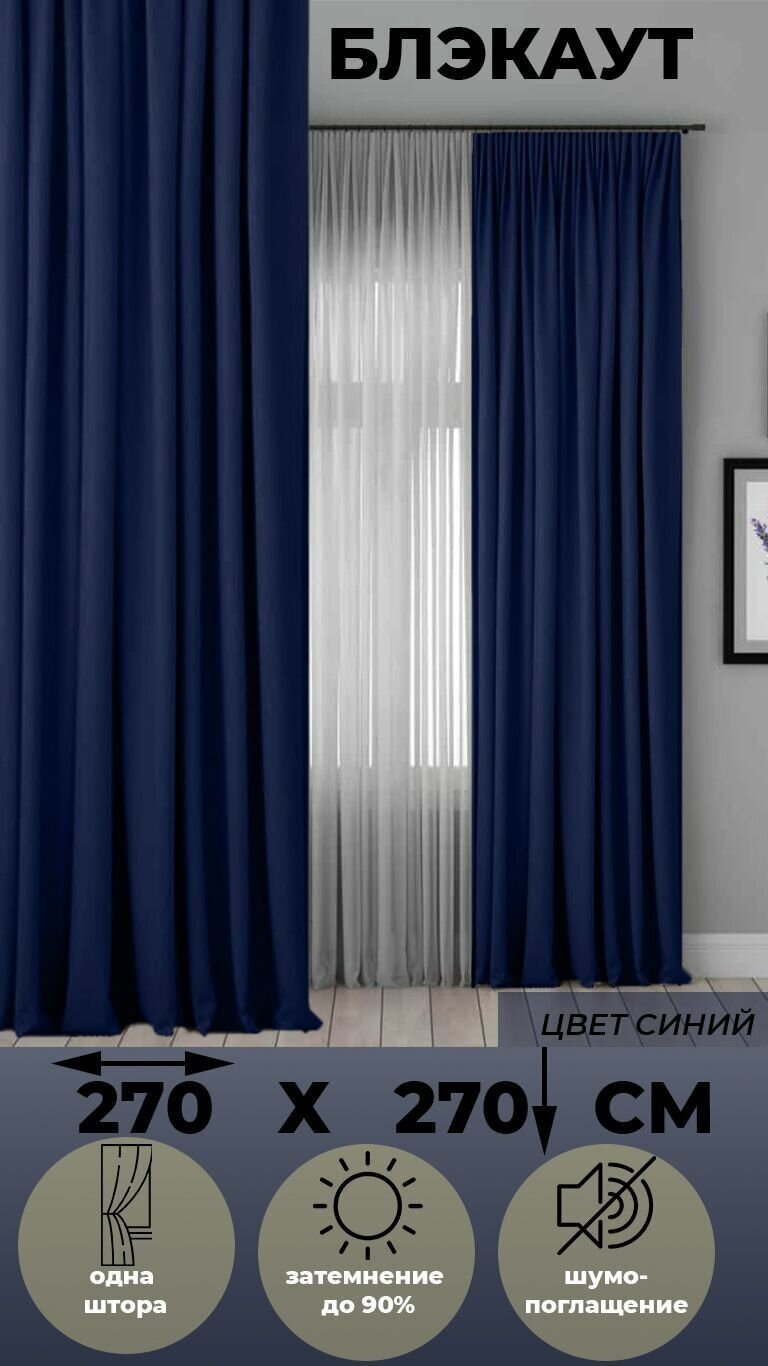 Портьера 1 шт Tex Valley Блэкаут, ширина 270, высота 270 см, Синий информация: