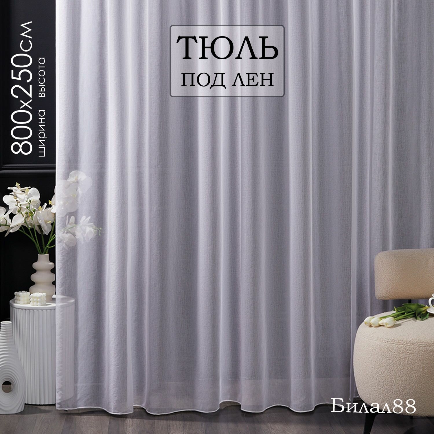 Готовый тюль под лен на шторной ленте с утяжелителем ширина 800 см высота 250 см; вуаль 8 м информация: