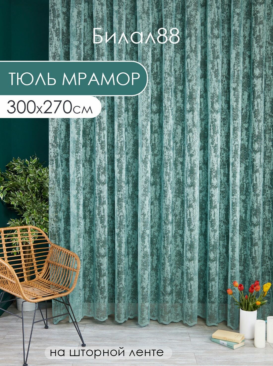 10 цен на Готовый тюль сетка мрамор на шторной ленте высота 270 см ширина 300 см; занавеска в спальню