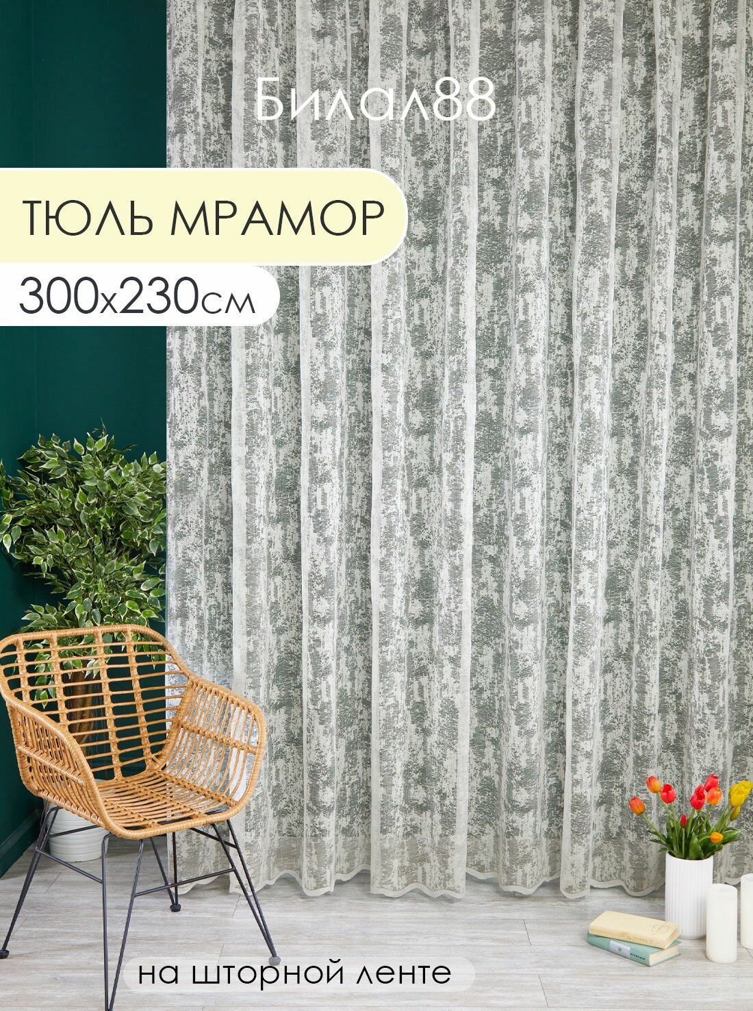 10 цен на Готовый тюль сетка мрамор на шторной ленте высота 230 см ширина 300 см; занавеска в спальню 3 м