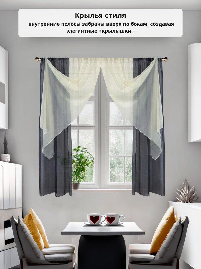 Шторы для кухни короткие тюль вуаль Домтекс35 "Радуга" 580*180см черный/серый 3 200 ₽