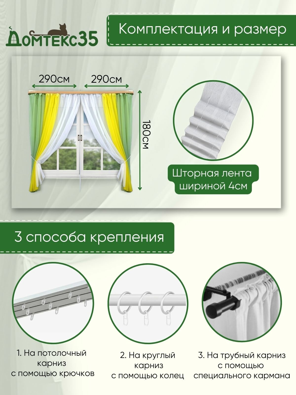 Отзывы на Шторы для кухни короткие тюль вуаль Домтекс35 "Радуга" 580*180см зеленый/желтый