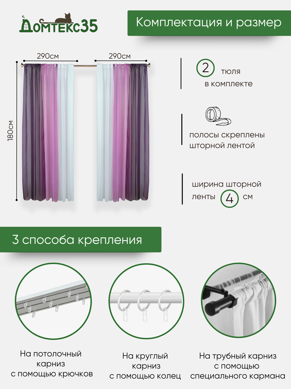Отзывы на Шторы для кухни короткие тюль вуаль Домтекс35 "Радуга" 580*180см фиолетовый/сиреневый
