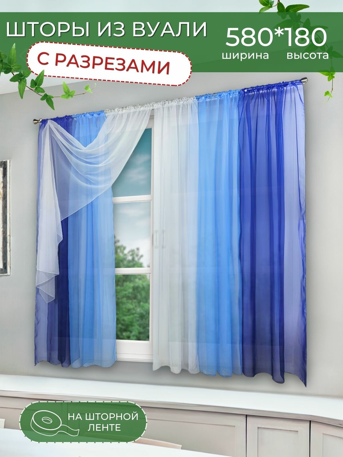 Отзывы на Шторы для кухни короткие тюль вуаль Домтекс35 "Радуга" 580*180см синий/голубой