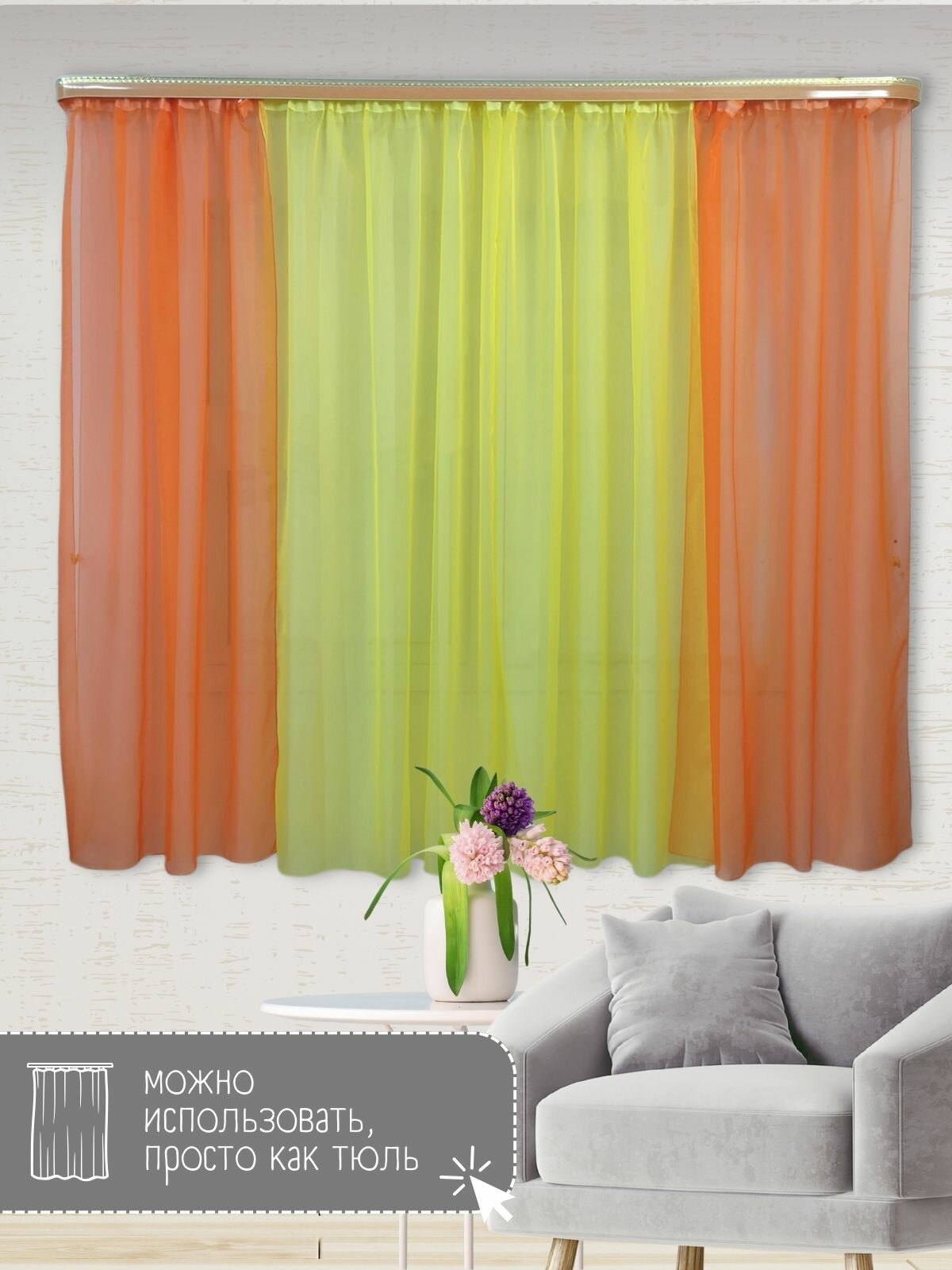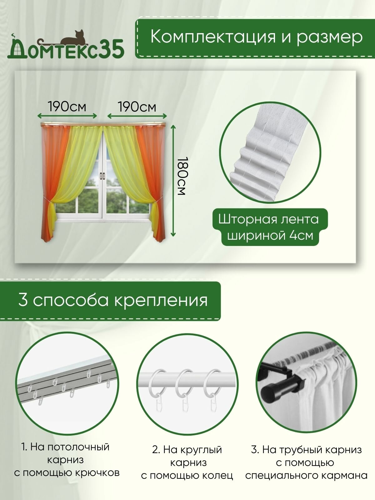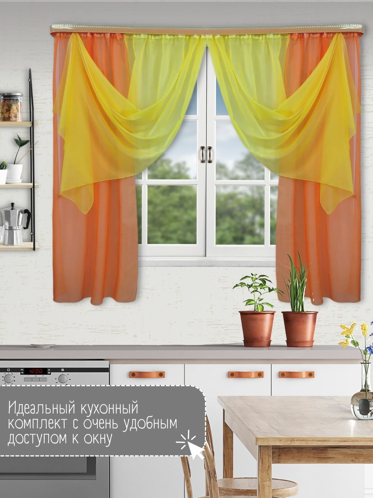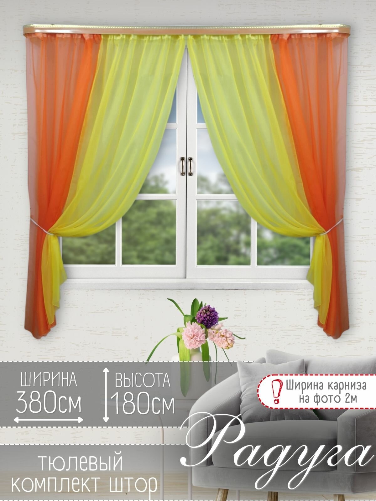 Отзывы на Шторы для кухни короткие тюль вуаль Домтекс35 "Радуга" 380*180см оранжевый/желтый