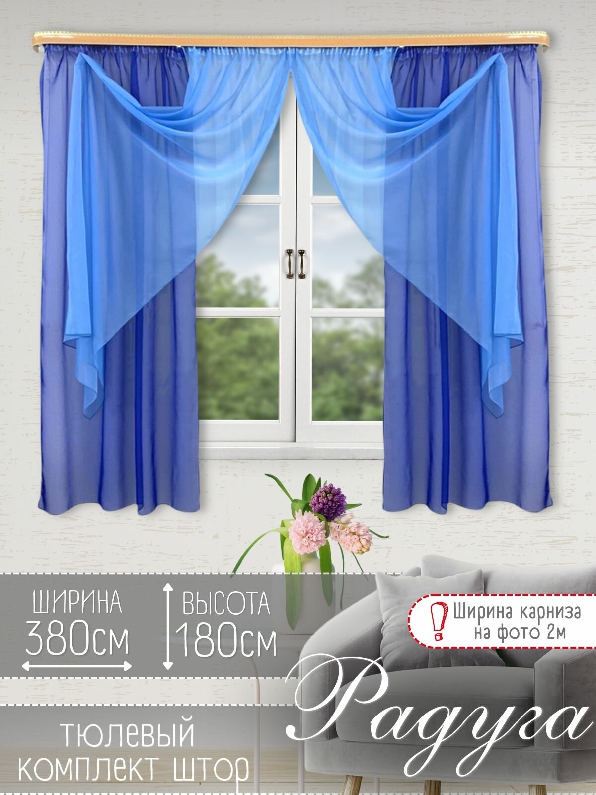 Отзывы на Шторы для кухни короткие тюль вуаль Домтекс35 "Радуга" 380*180см синий/голубой
