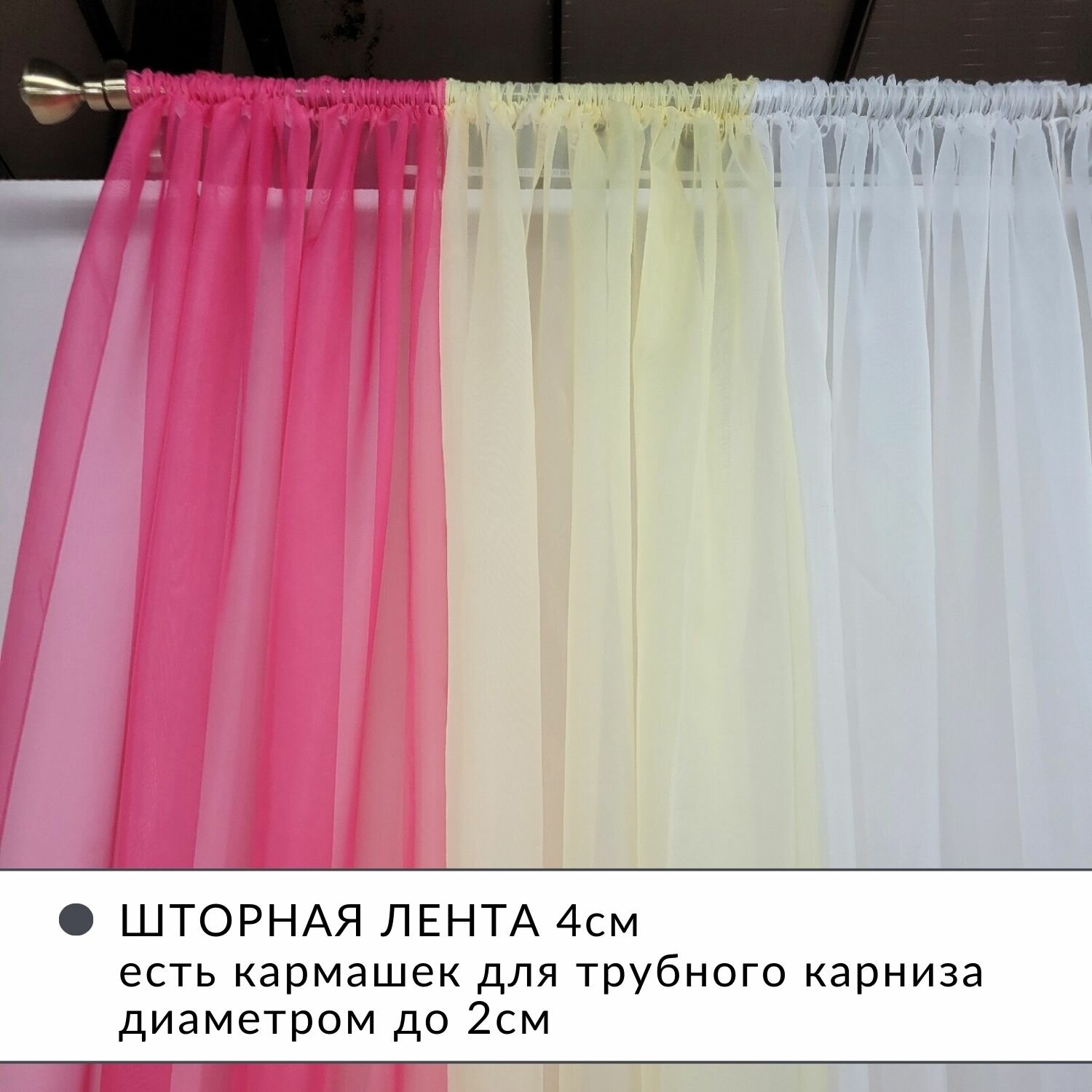 Отзывы на Шторы для кухни короткие тюль вуаль Домтекс35 "Радуга" 580*180см фуксия/молочный