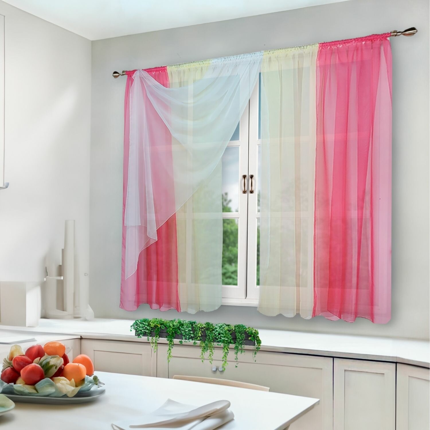 Шторы для кухни короткие тюль вуаль Домтекс35 "Радуга" 580*180см оранжевый/розовый 2 230 ₽