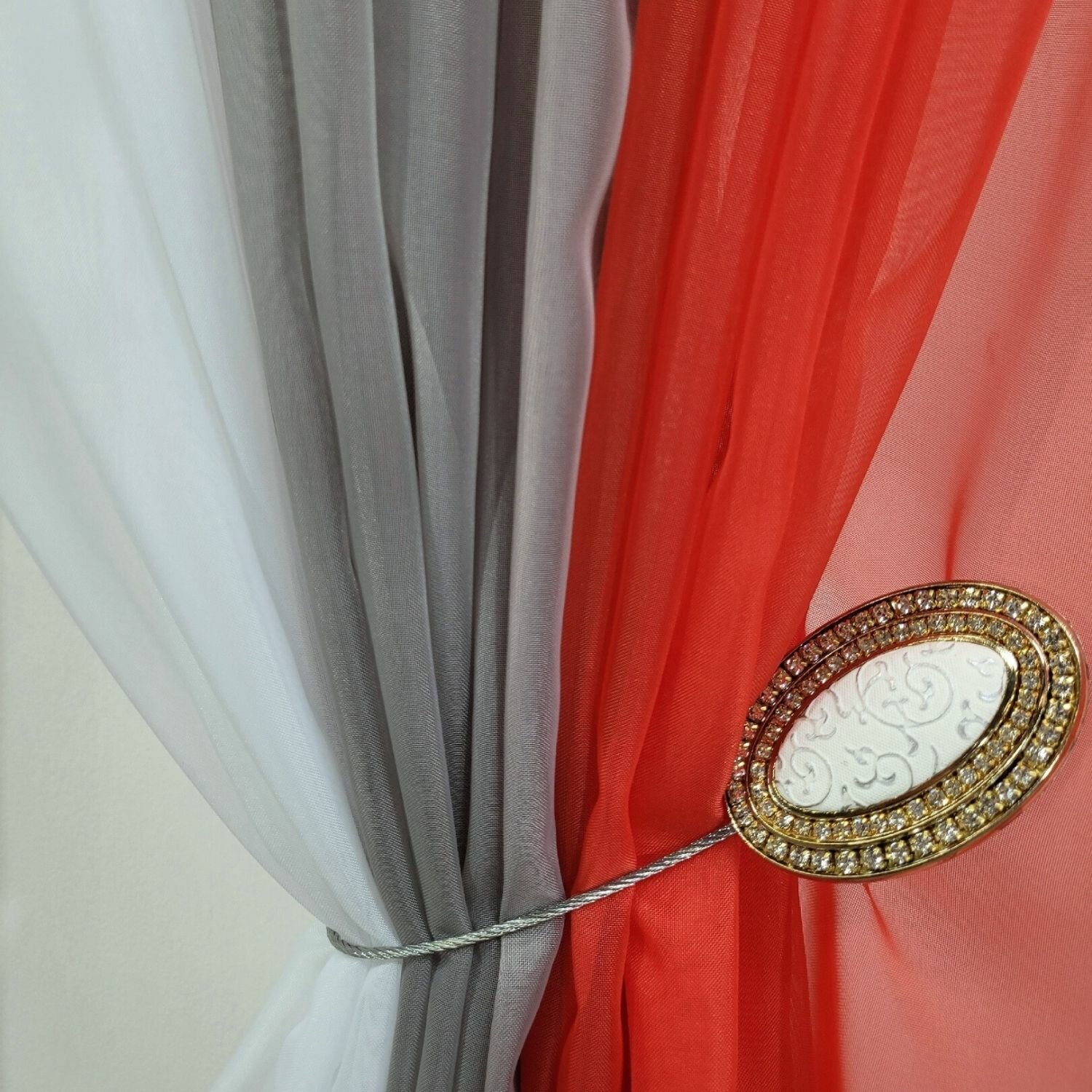 Шторы для кухни короткие тюль вуаль Домтекс35 "Радуга" 580*180см коралловый/серый 2 230 ₽