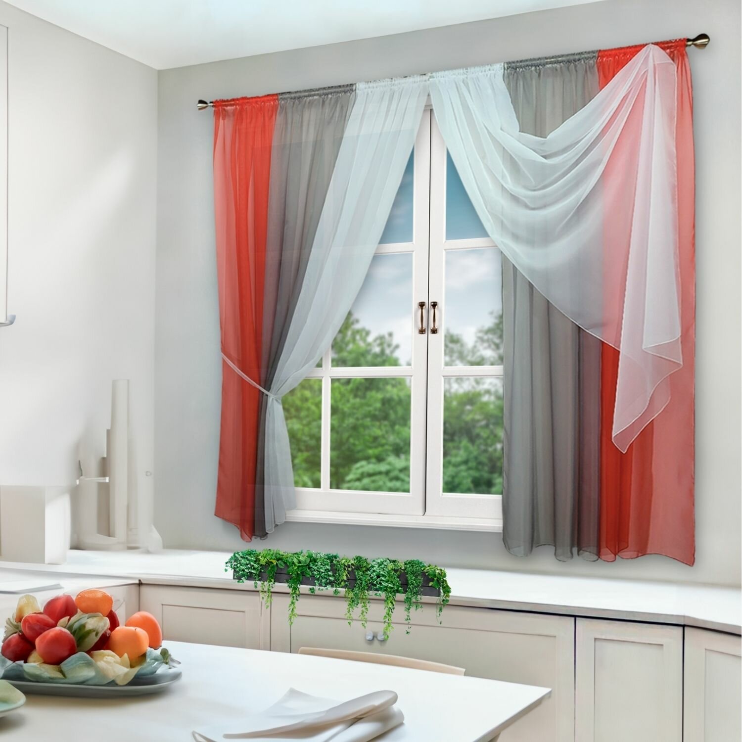 Отзывы на Шторы для кухни короткие тюль вуаль Домтекс35 "Радуга" 580*180см красный/серый