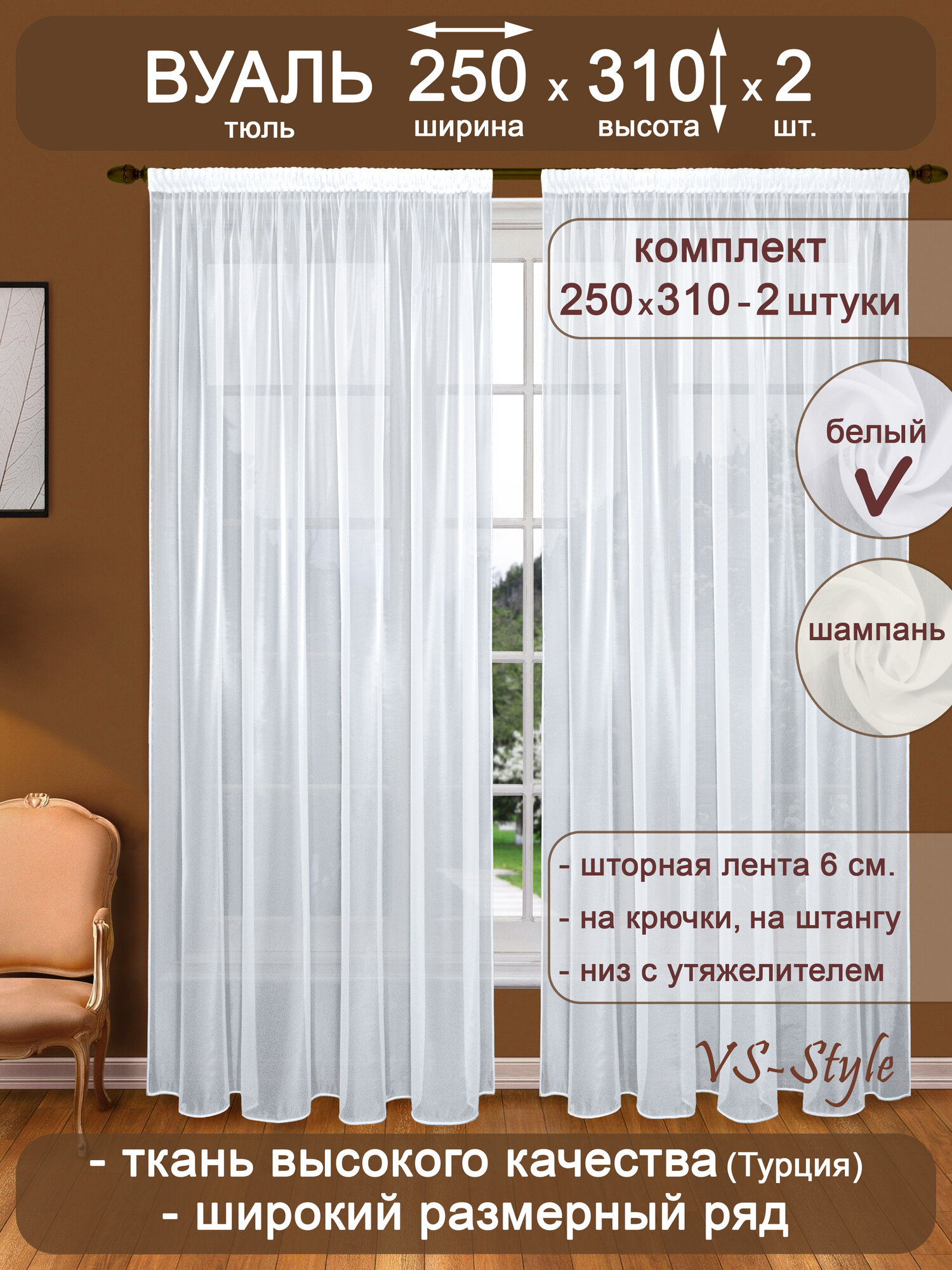 Тюль вуаль VS-Style комплект Т104-1 ш250*в310 -2шт. белый, с утяжелителем. информация: