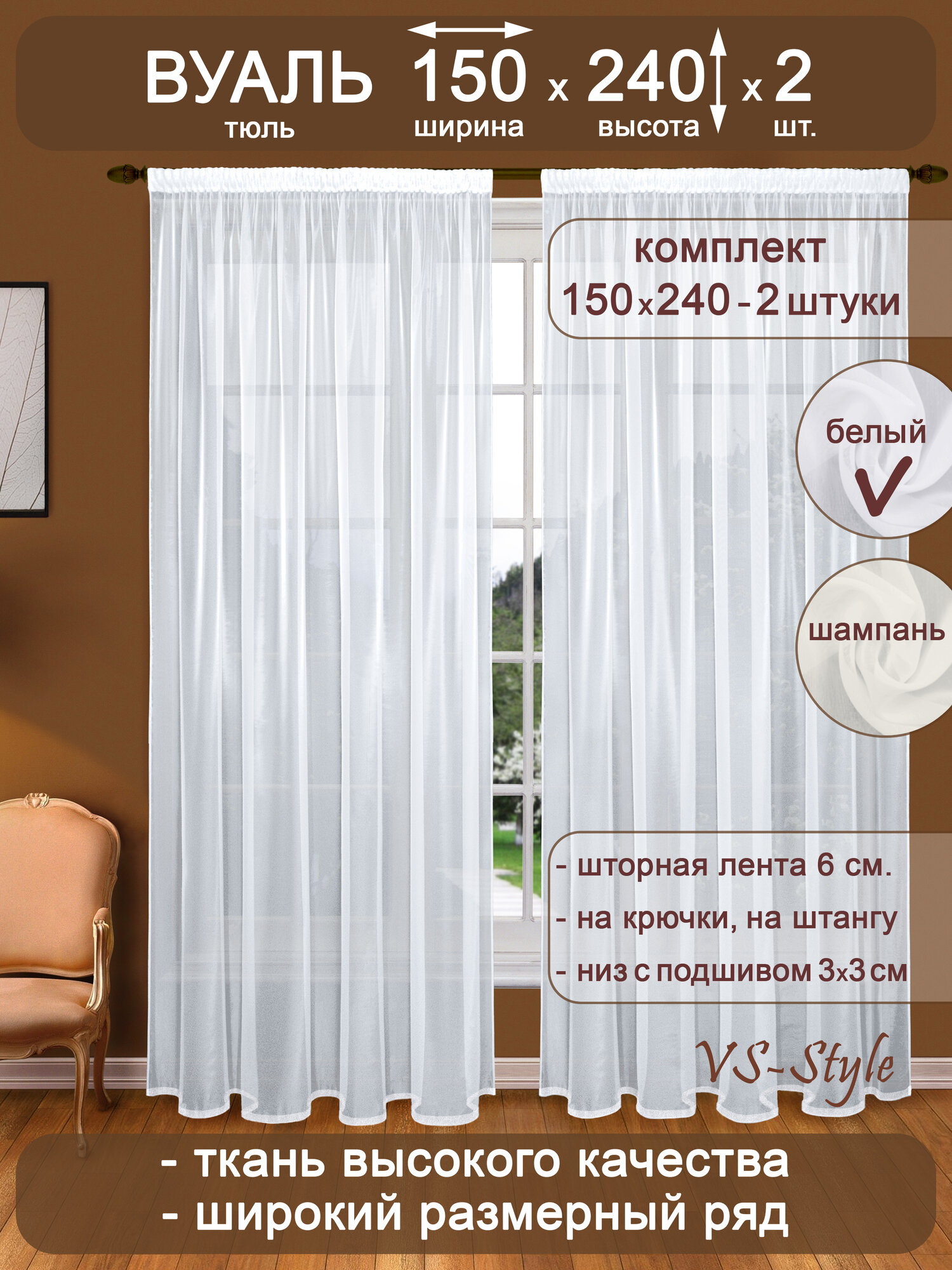 Тюль вуаль VS-Style комплект Т102-1 ш150*в240 -2шт. белый, низ с подшивом 3х3см. информация: