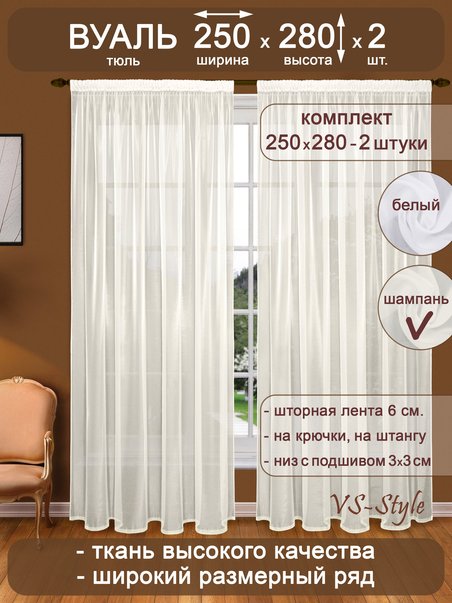 10 цен на Тюль вуаль VS-Style комплект Т102-2 ш250*в280 -2шт. шампань, низ с подшивом 3х3см.