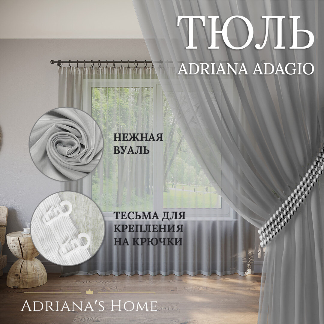 Тюль Adriana Adagio (для высоких потолков), вуаль, серый, высота 310 см, ширина 290 см 1 891 ₽