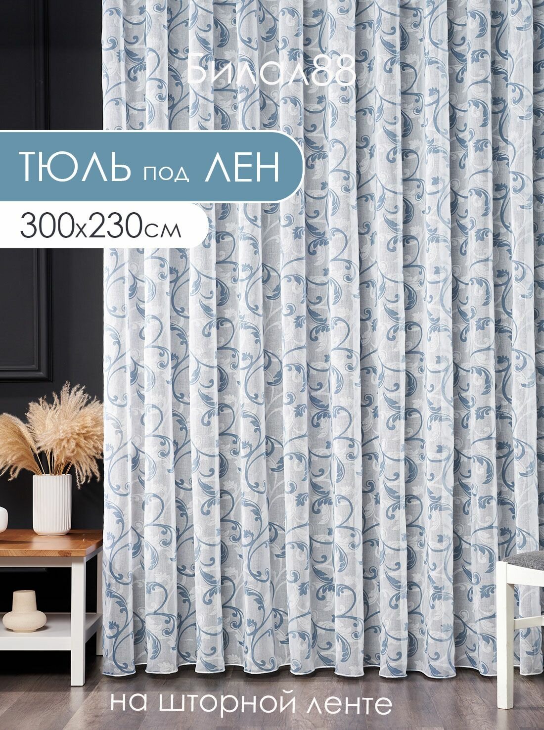Готовы тюль под лен ширина 300 см высота 230 см с утяжелителем; занавеска с рисунком 3 м в спальню информация:
